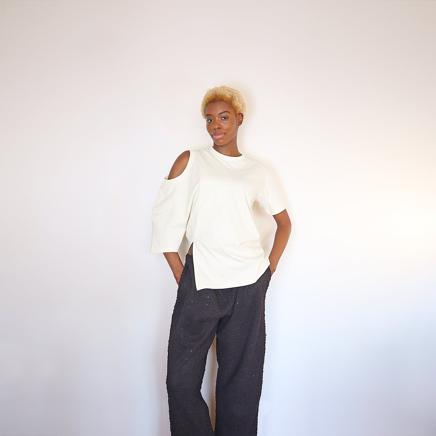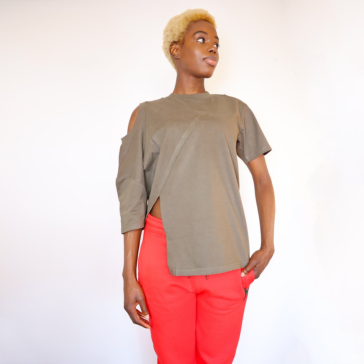 Redefine everyday basics with this bold, edgy twist on the classic t-shirt. Made from 100% heavyweight cotton, this unisex tee features a reworked asymmetrical design and one 3/4 sleeve with a shoulder cutout that breaks the mold of traditional styles. Perfect for anyone looking to elevate their wardrobe with a unique and modern edge, this shirt combines comfort with standout flair.