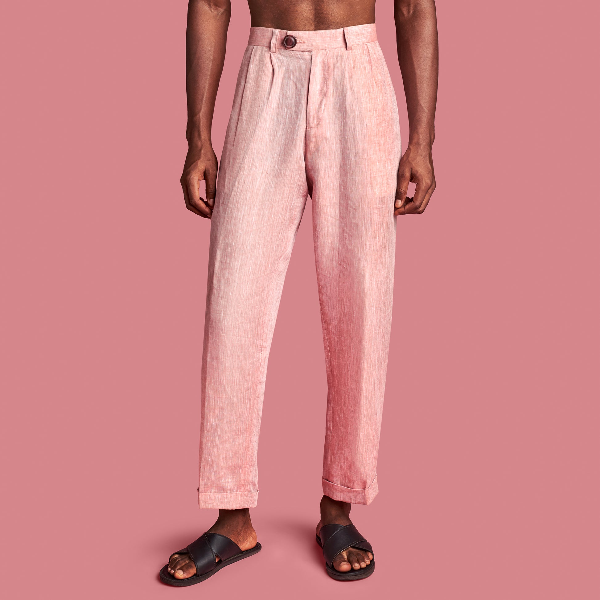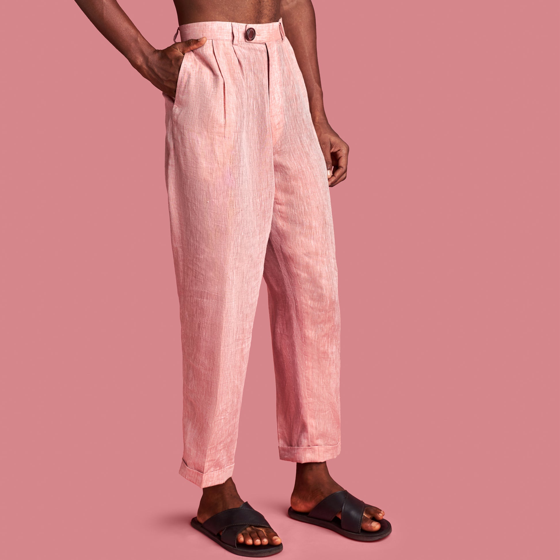 Inspired by the cool summer breeze, these trousers feature a cuffed hemline and a bold button.